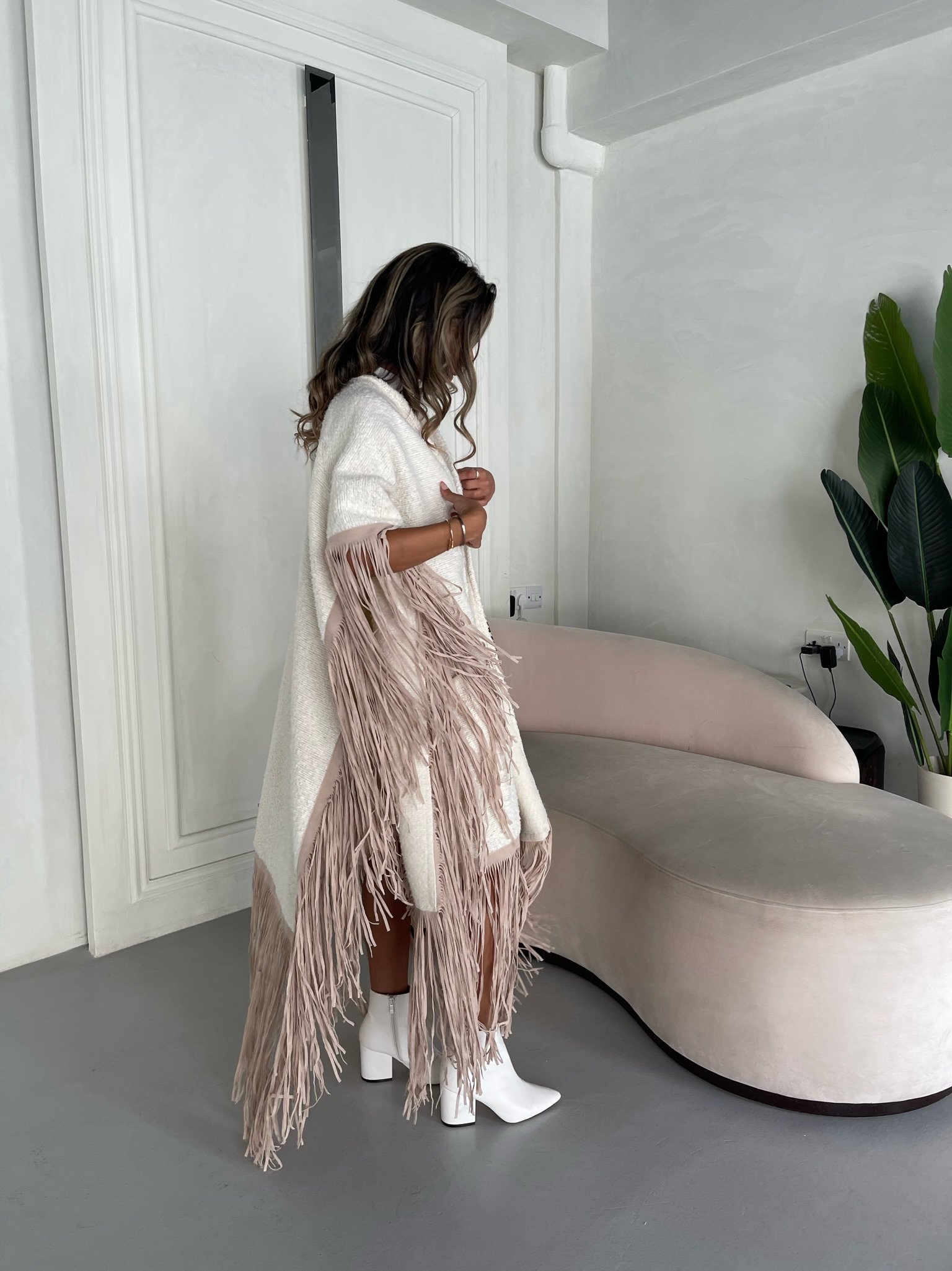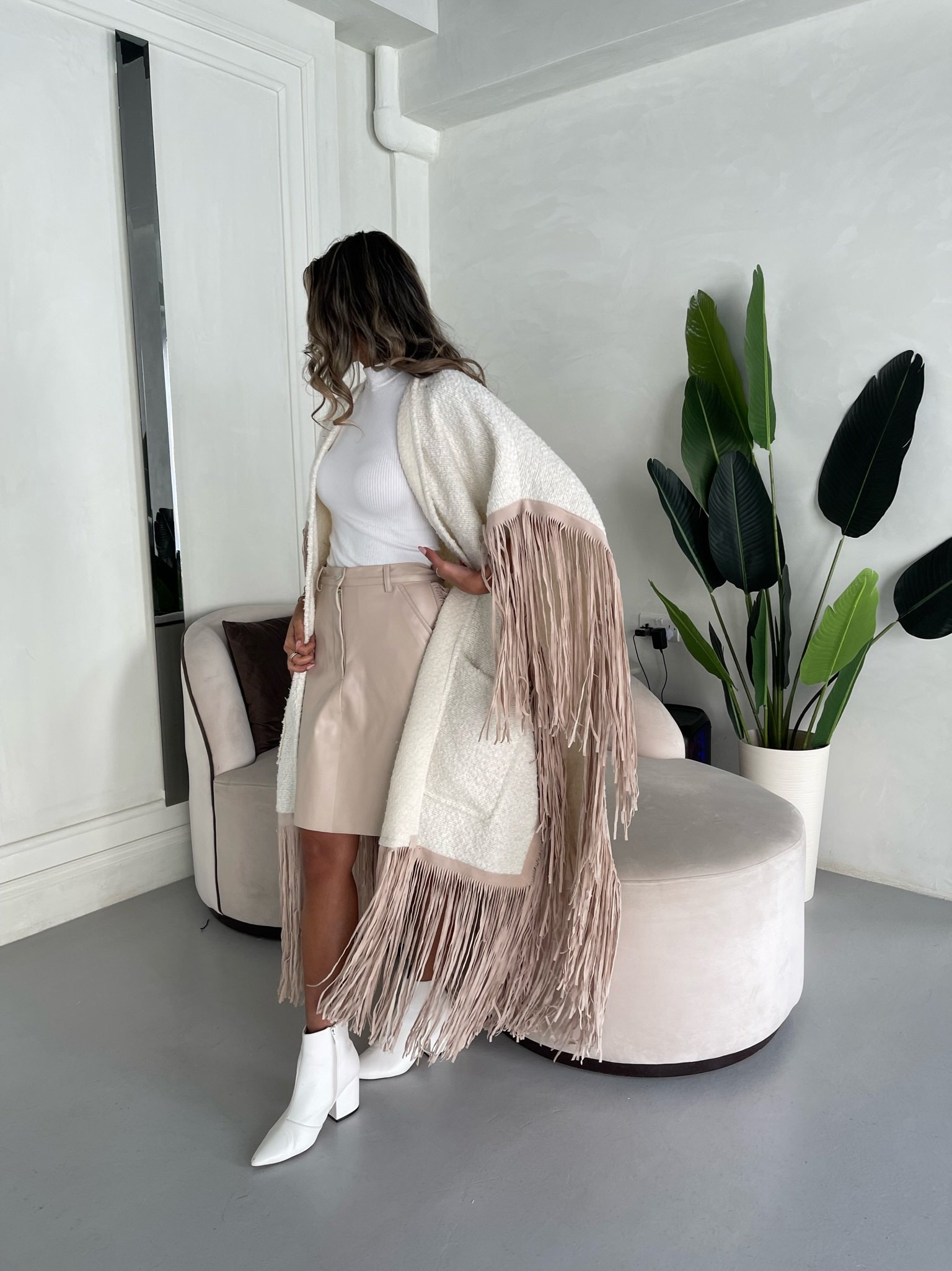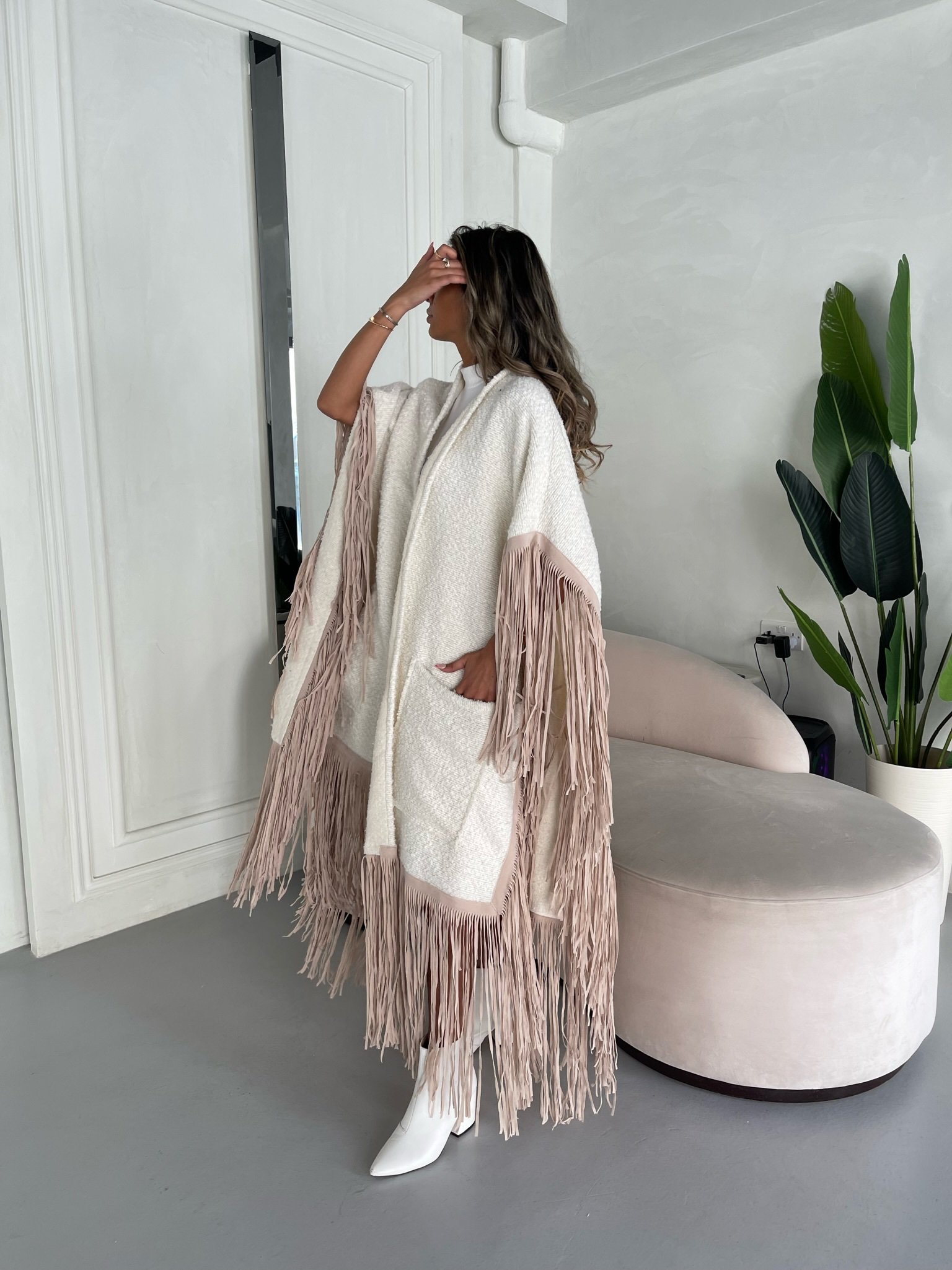 - Bisht: Poncho with side slit with pickets and fringe trim