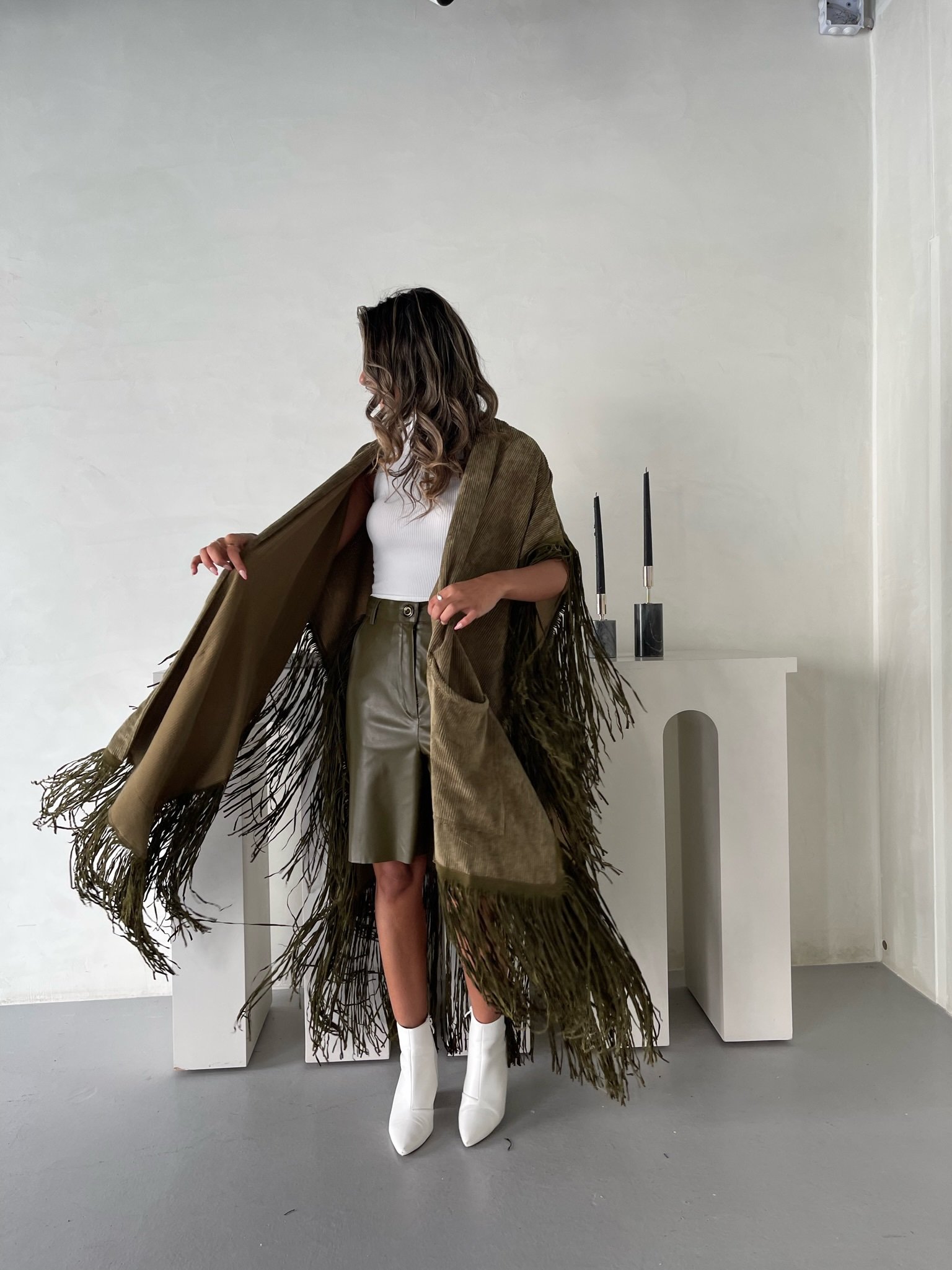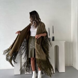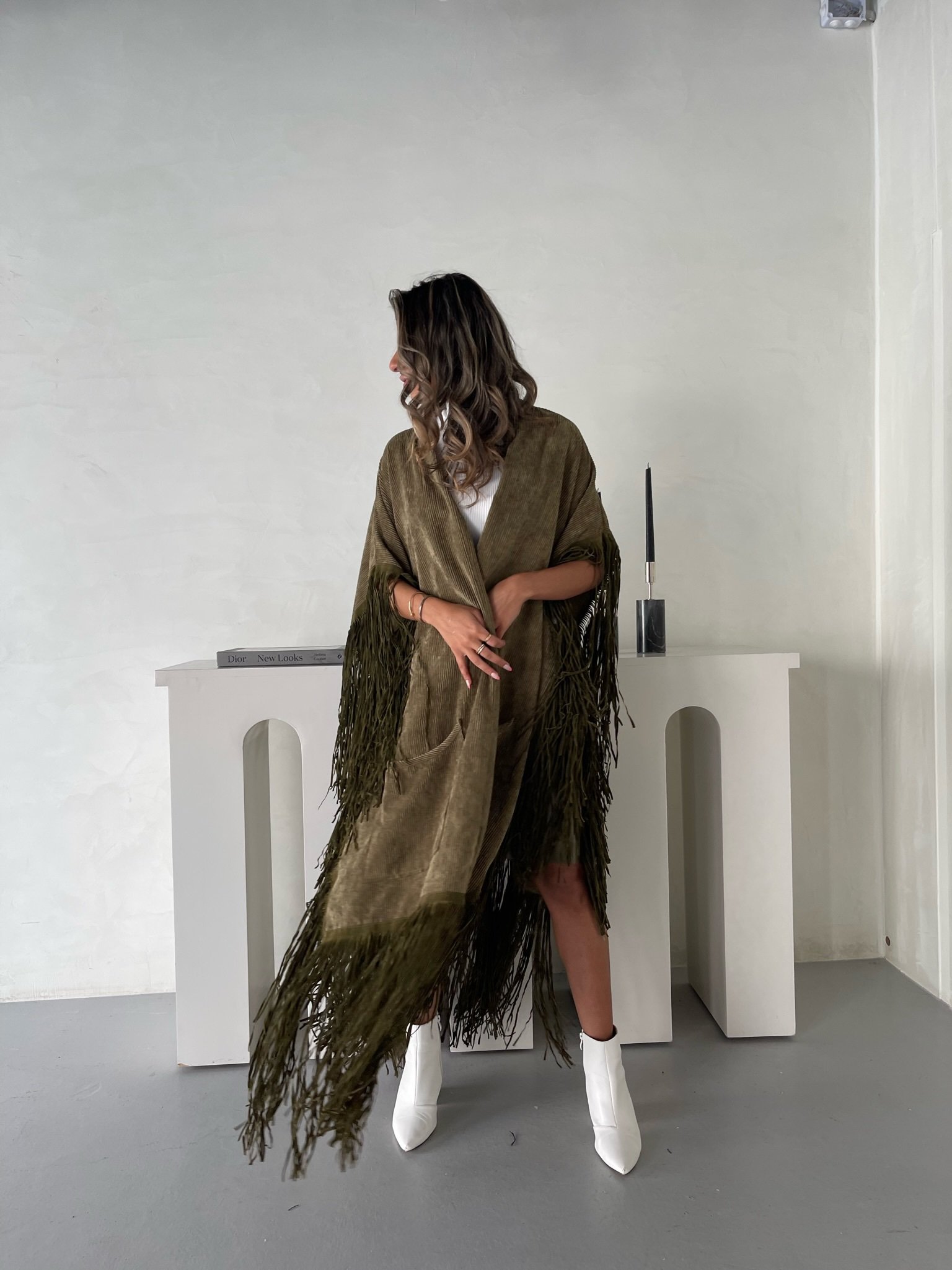 - Bisht: Poncho with side slit with pickets and fringe trim