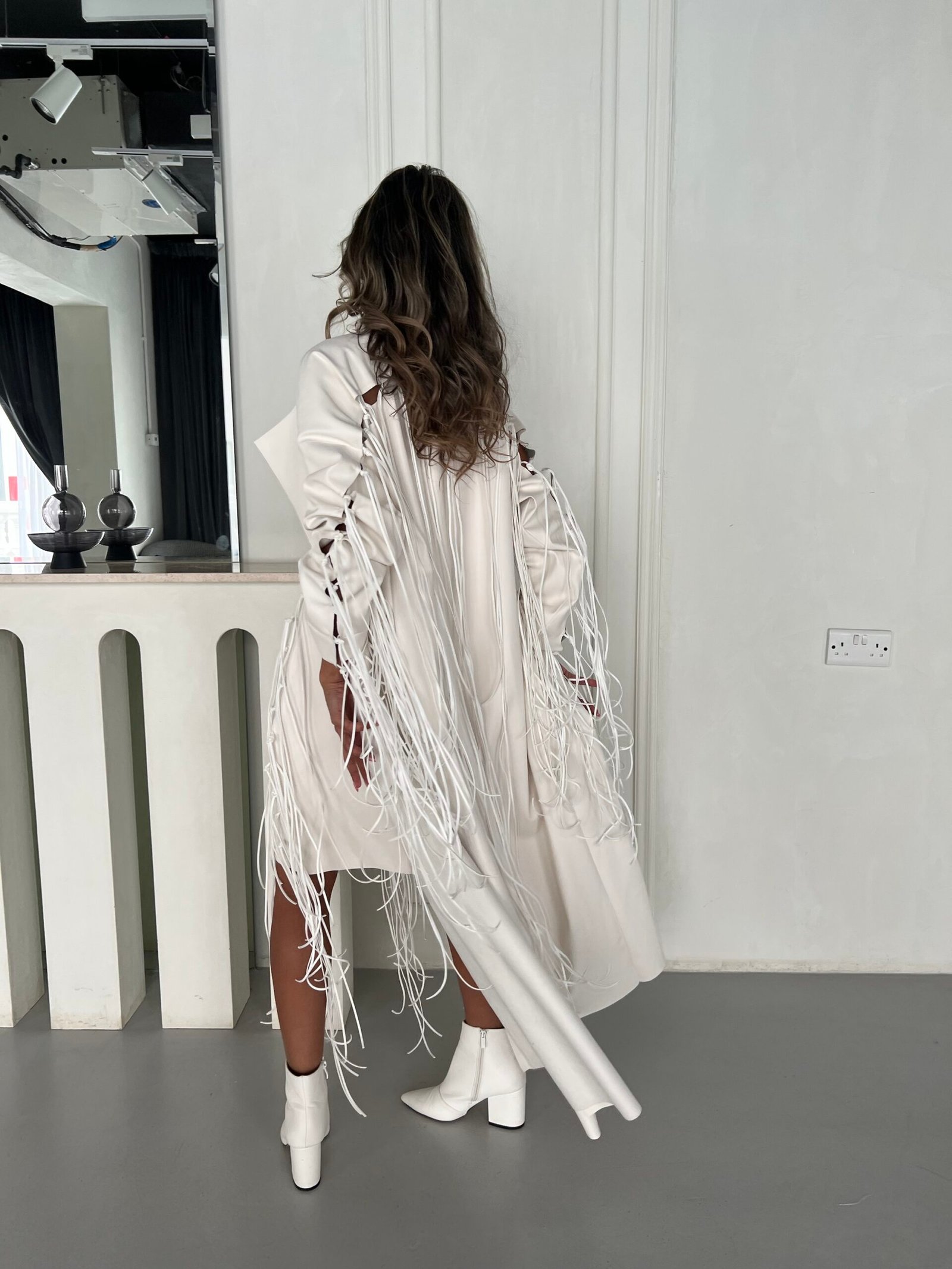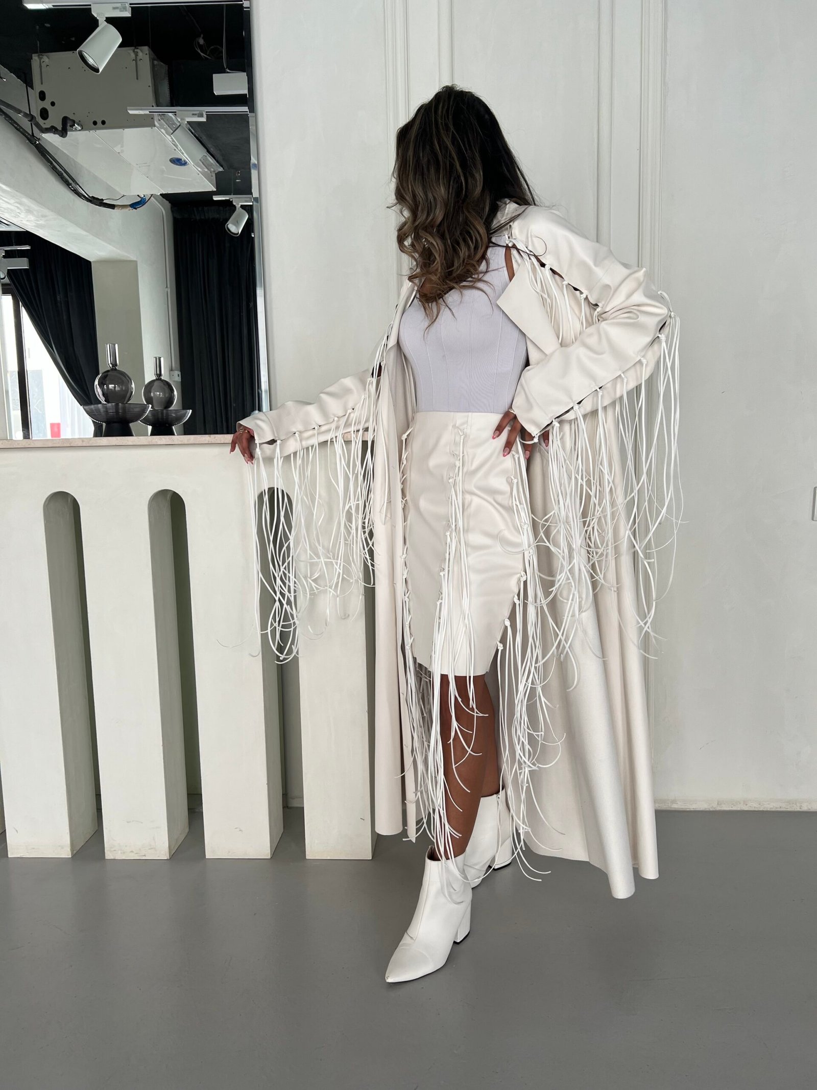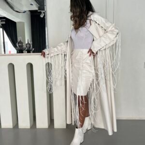 - Option 1: Synthetic leather and suede fringe.