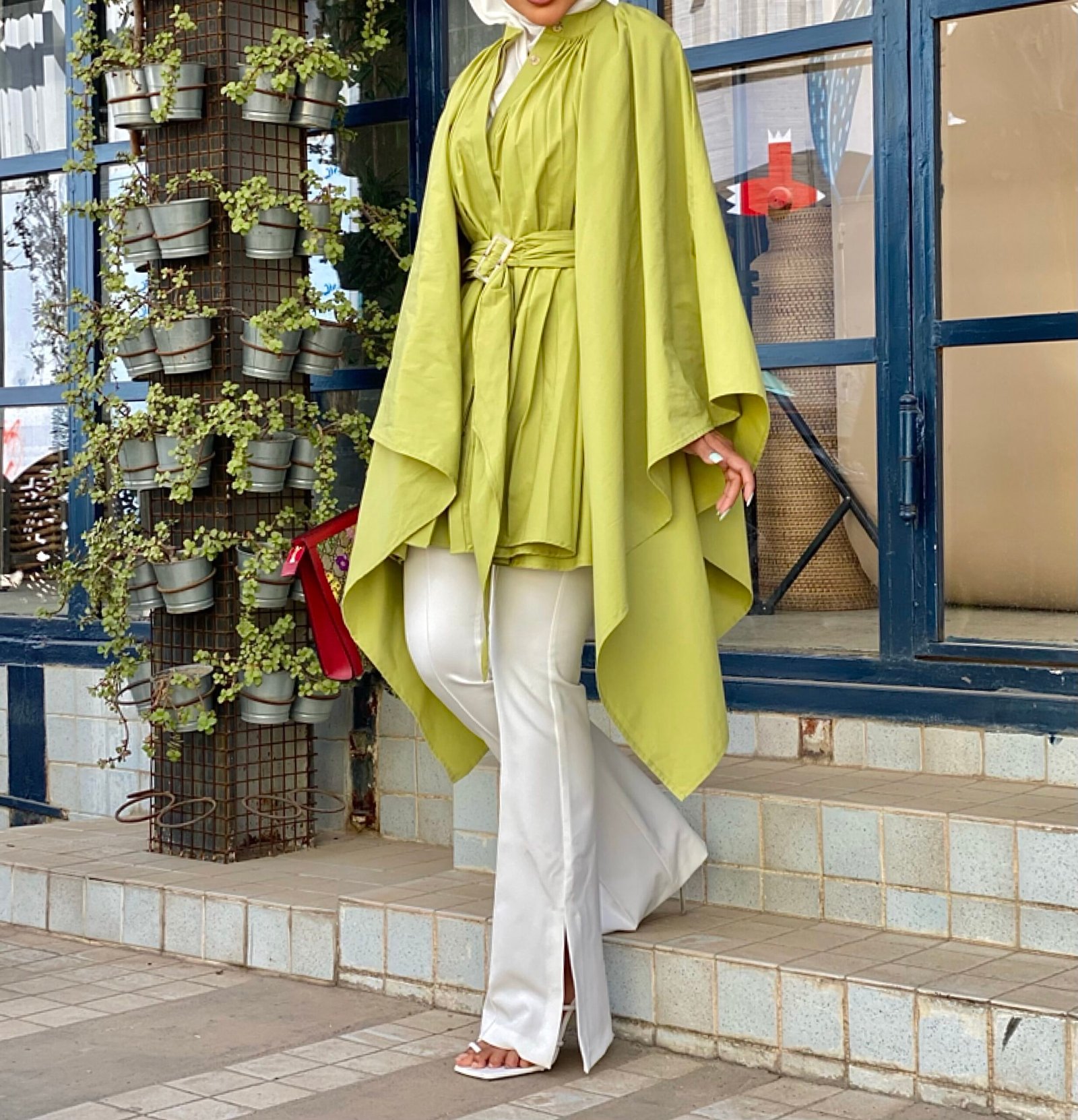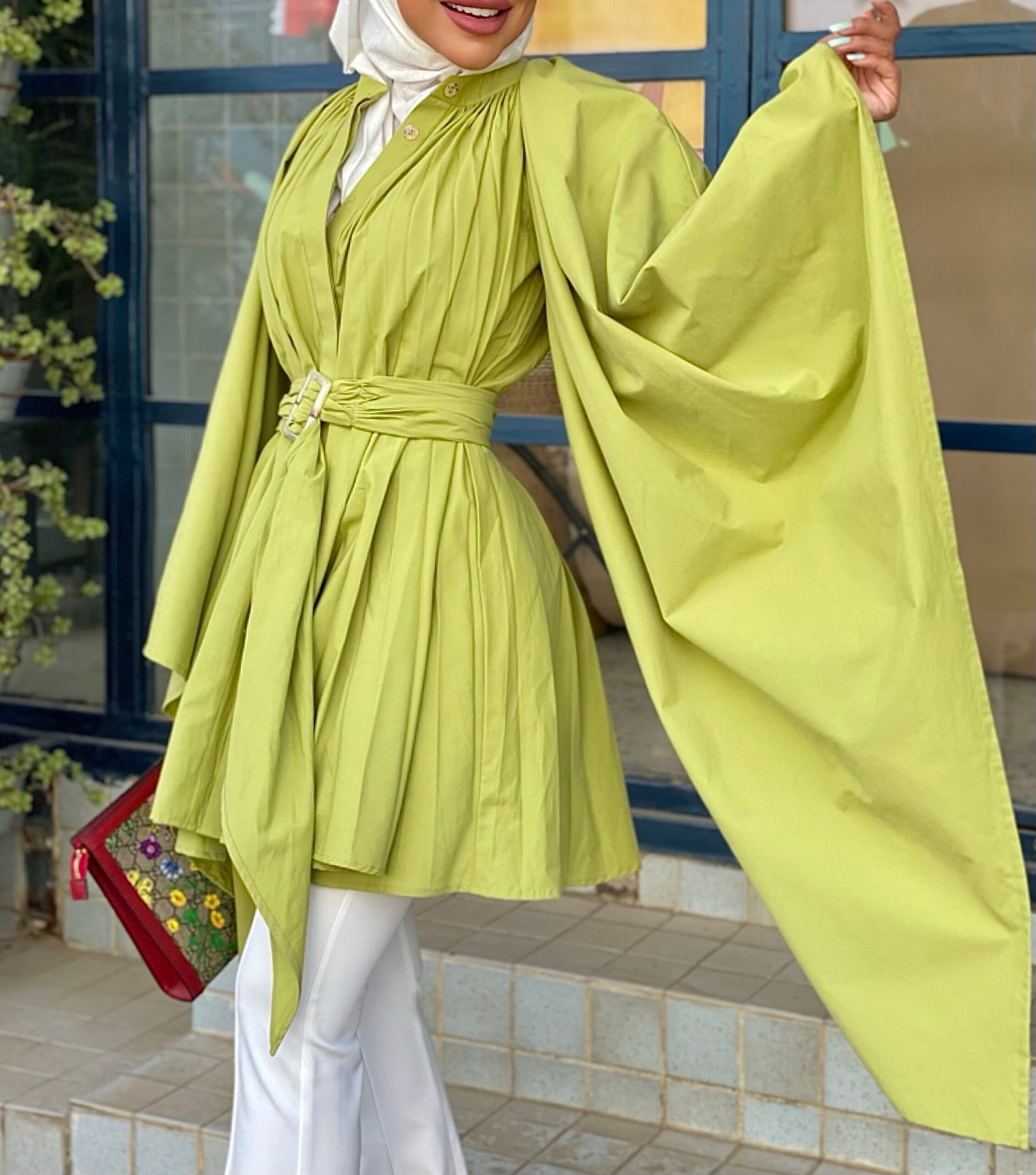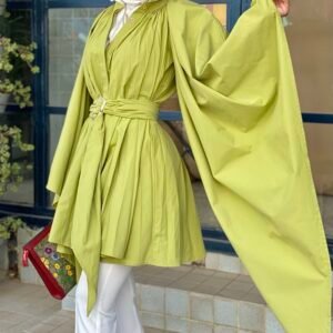 Belted pleats shirt dress