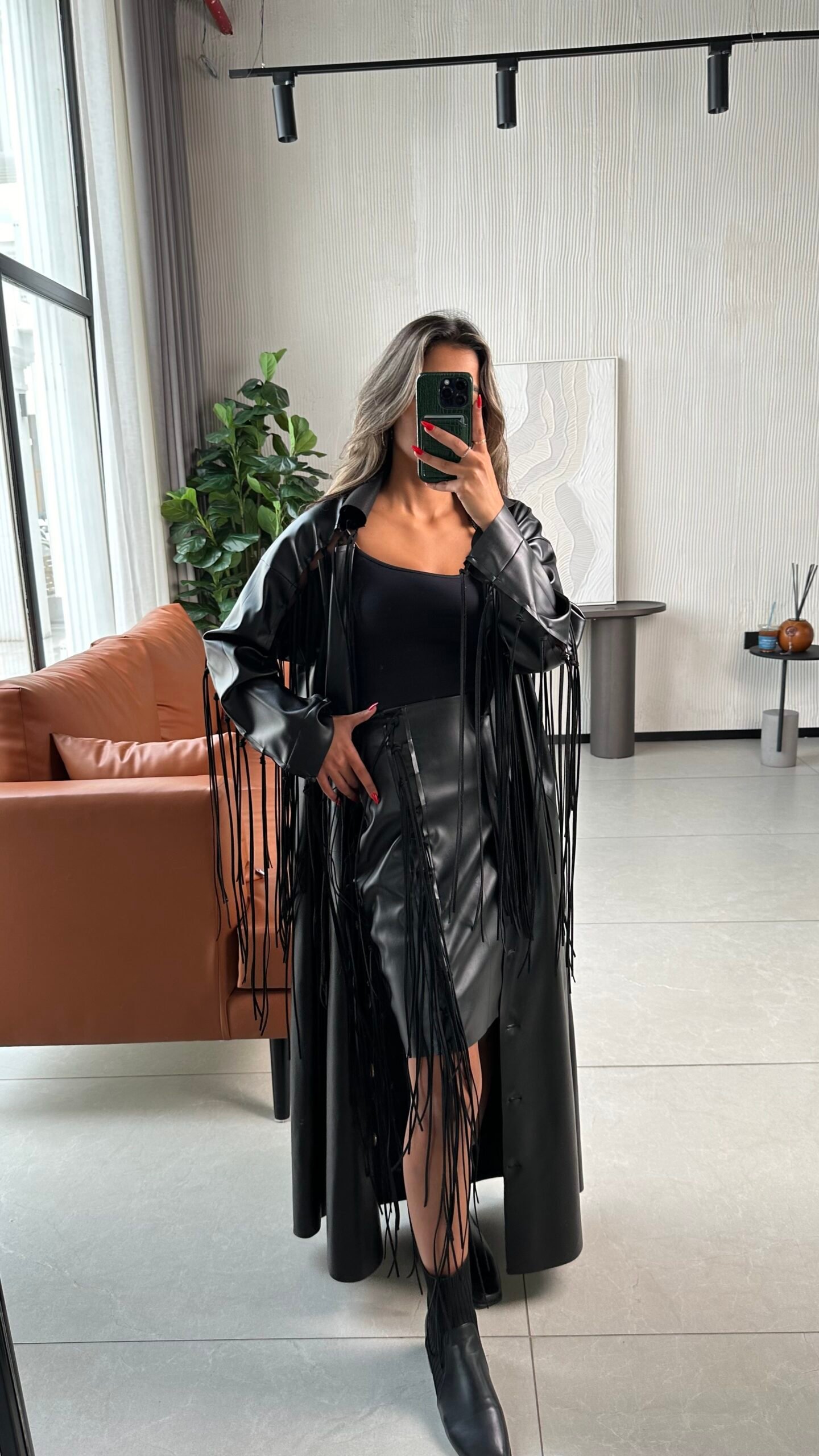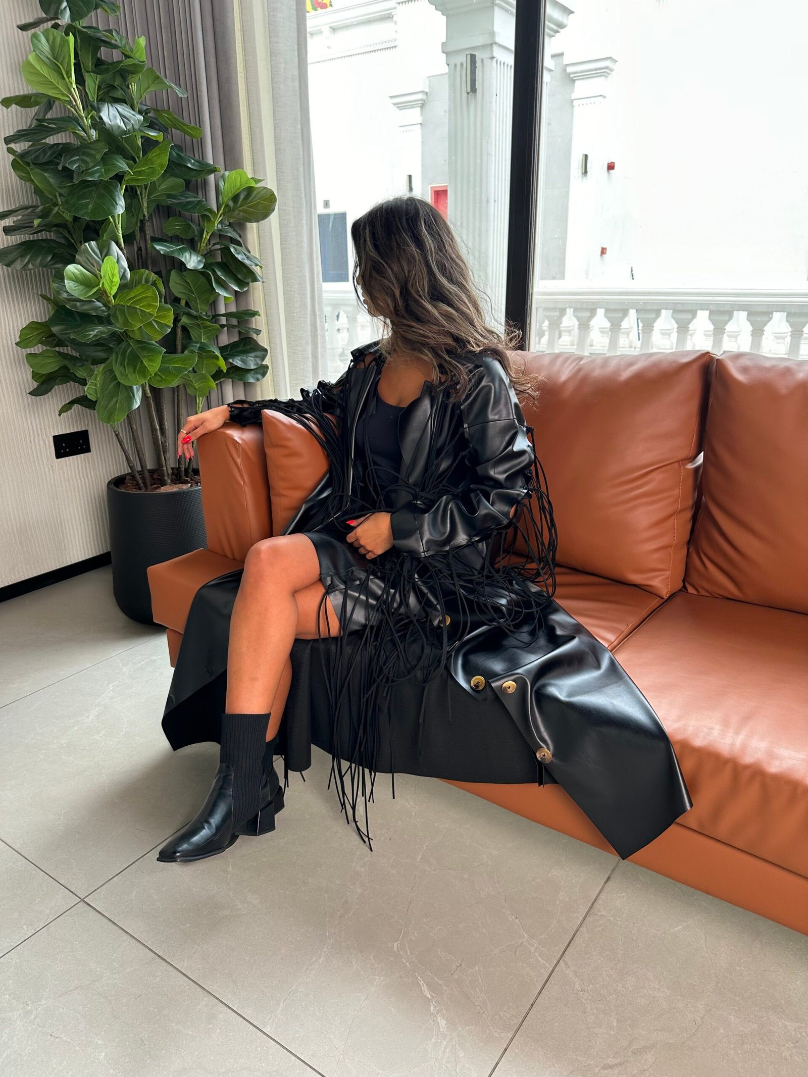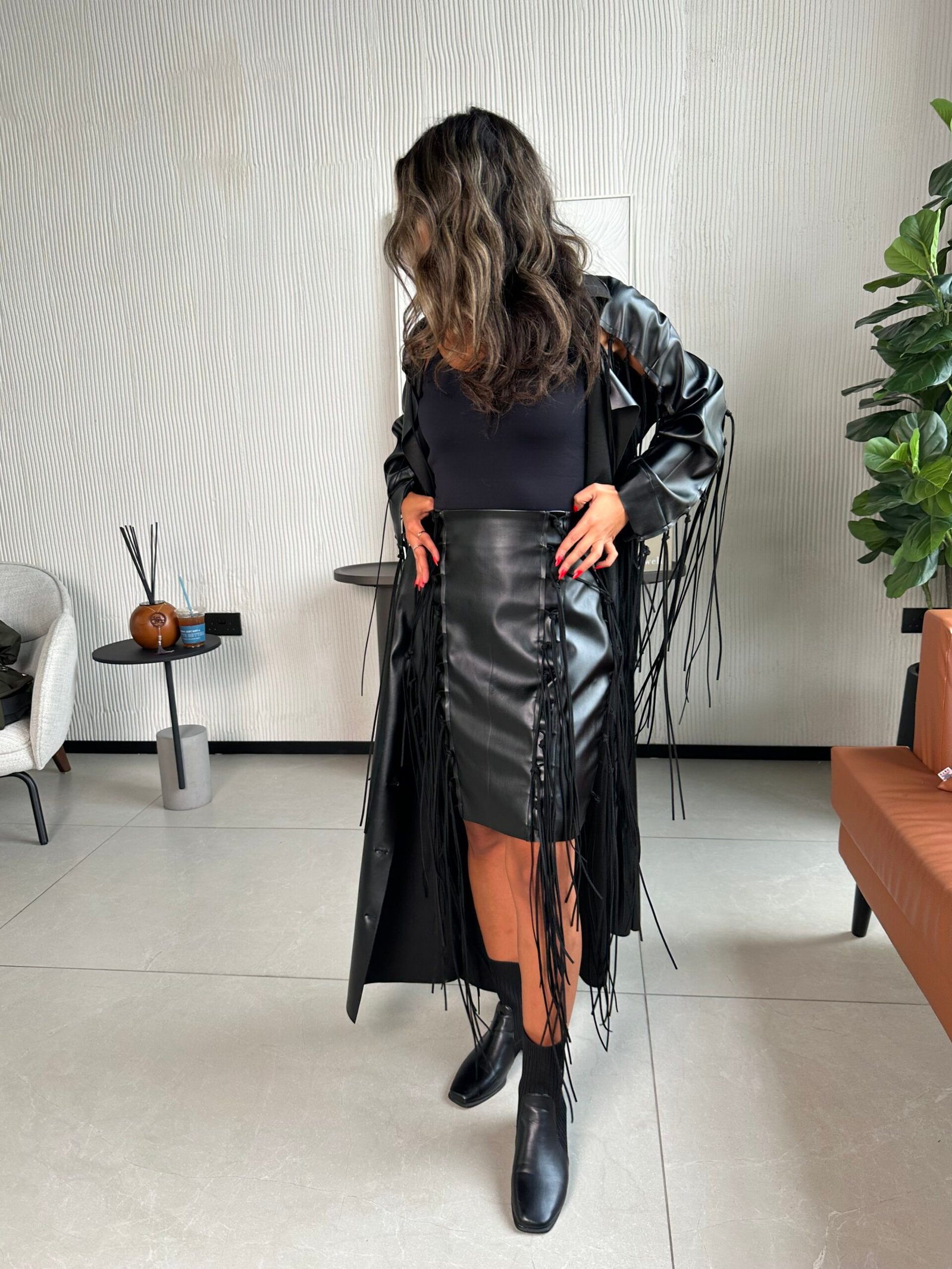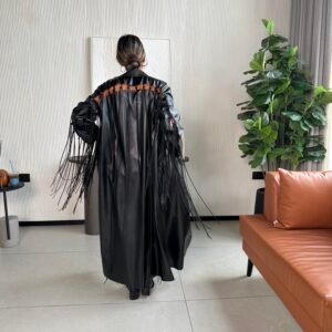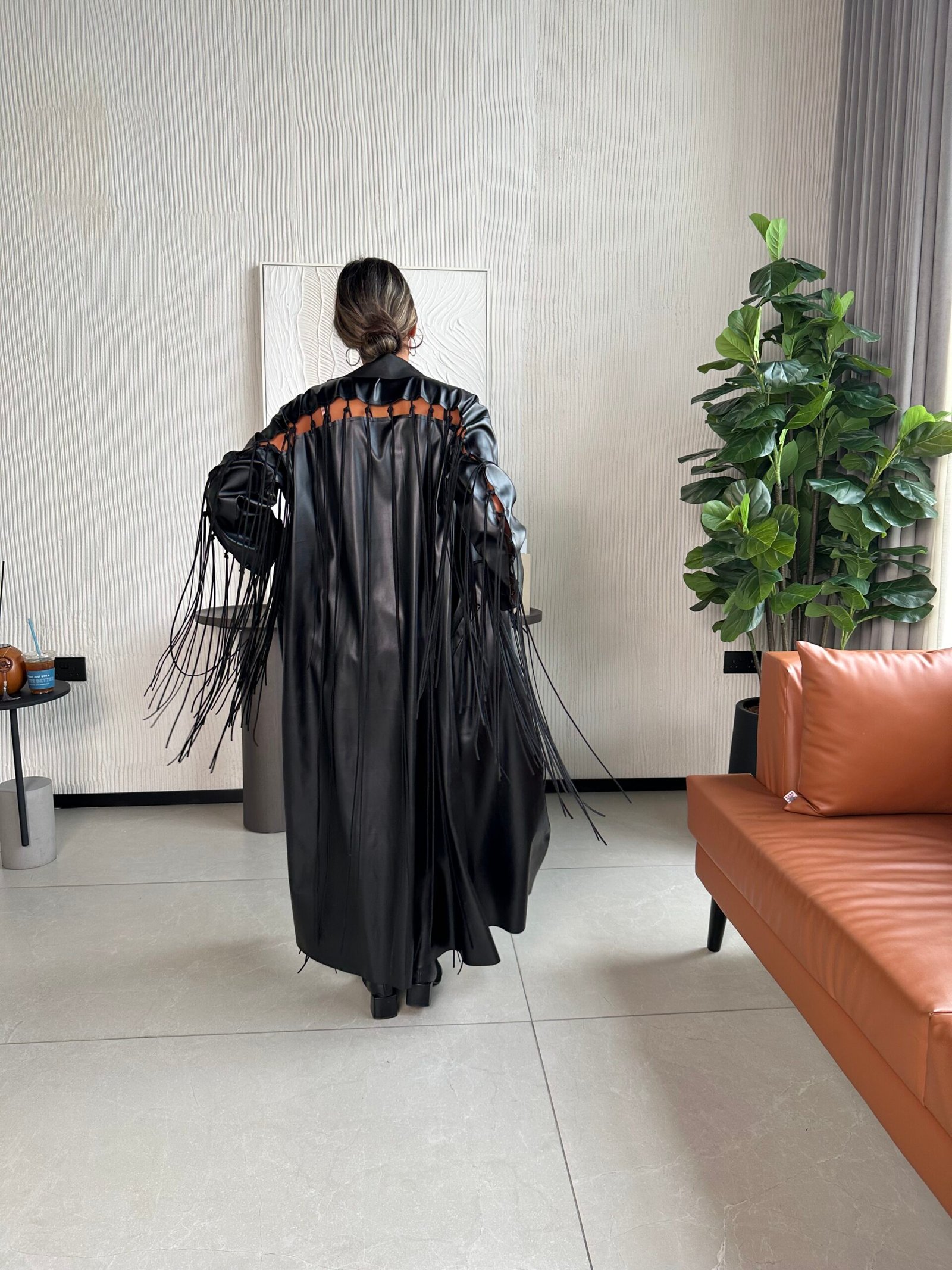 - Option 1: Synthetic leather and suede fringe.
