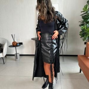 - Model is wearing size Coat size S/M, Skirt size XS length 21″.