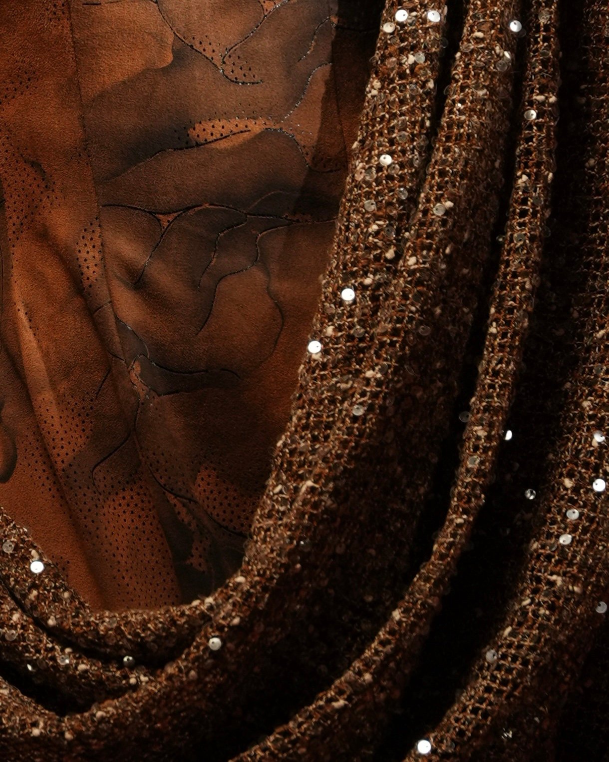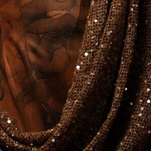 - Fabric & color: inner layer: faux suede ( slightly stretchy) , outer layer: mesh. Color is warm ginger brown.